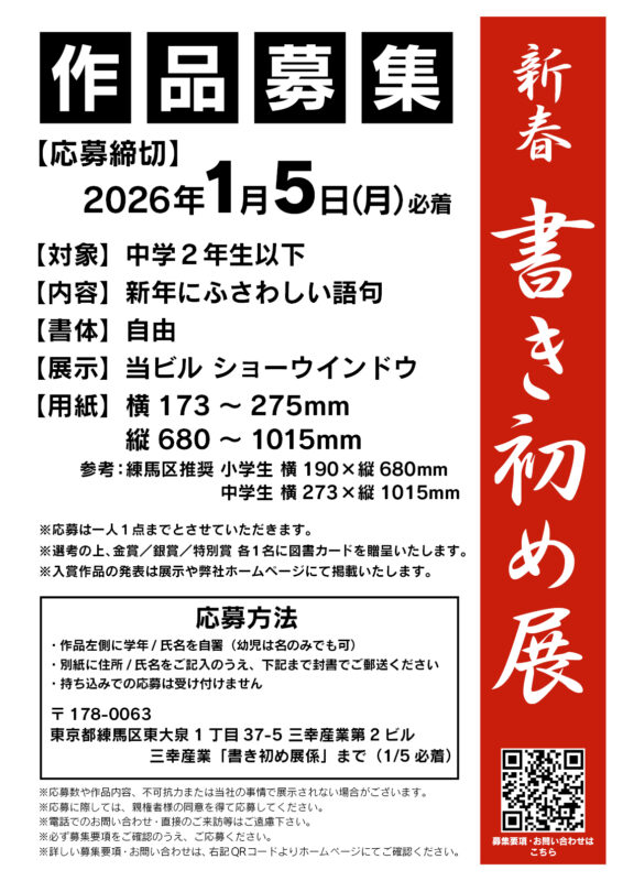 ・応募に伴う個人情報は、厳正な管理の下、「書き初め展」以外の目的には使用いたしません。